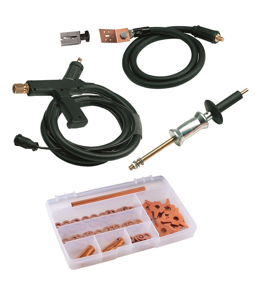 Bodovacia pištoľ Bodovacie pištoľ s príslušenstvom Pre bodovania skrutiek, nitov, klincov, podložiek, kontaktov atď. Pre jednostranné bodovanie plechov Pre žíhanie plechov pri opravách karosérií Dynamické vyrovnávacie kladivo vo výbave Stehovaciu elektróda pre preplátovanie plechov Zemný kábel Sada spotrebného materiálu Elektródy pre rôzne tvary spotrebného materiálu Pre: Car Spotter 5500 Plus, Digital Spotter 7000, Digital Spotter 9000