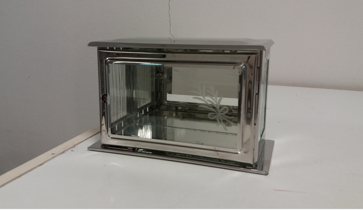 Závesná skrinka na pomník, uchytenie za zadnú stenu. Používa sa na fotografie alebo ako ležatá svietidlo.