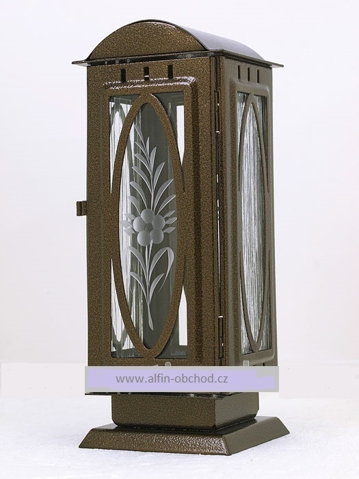 Lampáš na postavenie na pomník, uchytenie hmoždinkou, s oblou strechou, výstrih ovál.