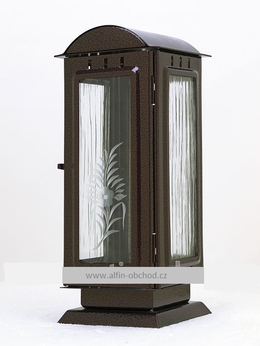 Lampáš na postavenie na pomník, výstrih ovál, uchytenie hmoždinkou, farebné varianty: čierna-straro-zlatá-starostrieborná-staroměď rozmer 100x100x230 mm