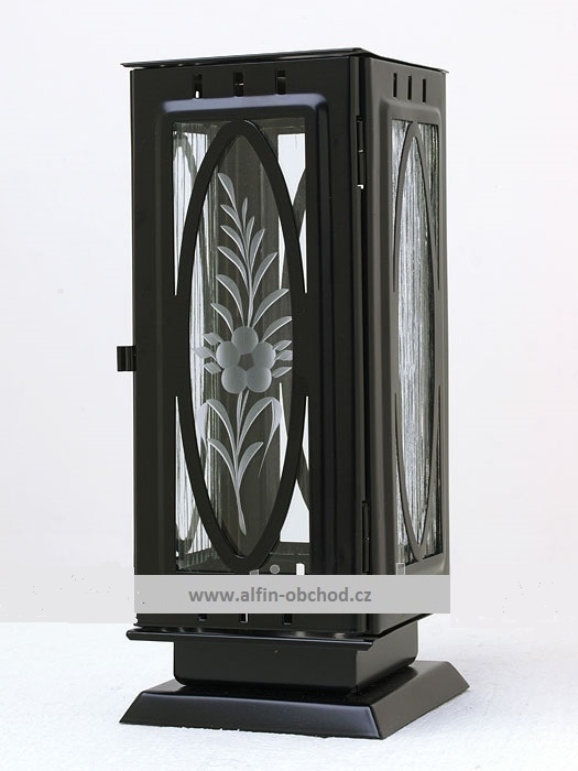 Lampáš na postavenie na pomník, výstrih ovál, uchytenie hmoždinkou, farebné varianty: čierna-straro-zlatá-starostrieborná-staroměď rozmer 100x100x230 mm