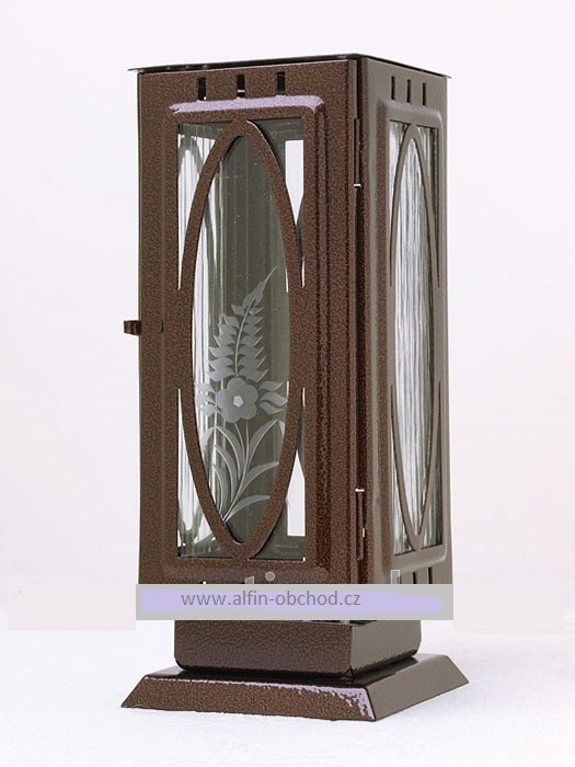 Lampáš na postavenie na pomník, výstrih ovál, uchytenie hmoždinkou, farebné varianty: čierna-straro-zlatá-starostrieborná-staroměď rozmer 100x100x230 mm