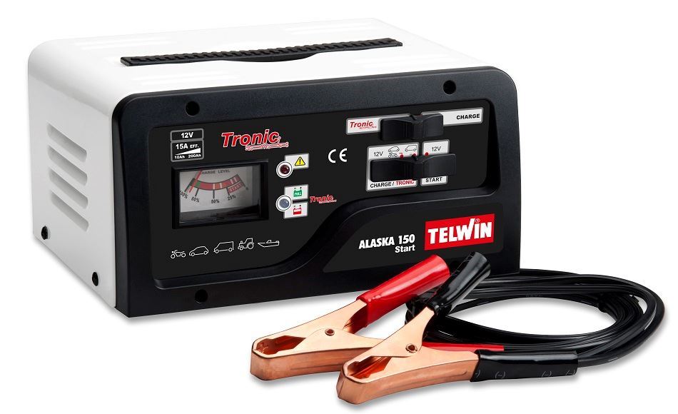 Elektronická nabíjačka s podporou štartu Alaska 150 Telwin, 12 V / 15 A s pomocným štartom max. 100 A pre akumulátory 10-200 Ah, vhodná pre osobné automobily.