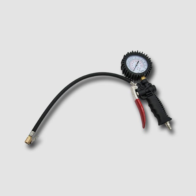Pistole na pneumatiky s manometrem a odpouštěcím ventilem, připojení pro rychlospojku.