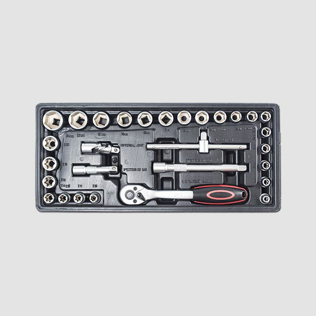 3/8" sada hlavic: ráčna, kardan, vratidlo 160mm, prodloužení 75,150mm, hlavice:6-7-8-9-10-11-12-13-14-15-16-17-18-19-21-22-24 mm, hlavice torx: E10-E11-E12-E14-E16-E18-E20