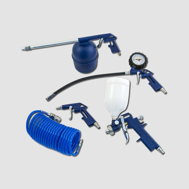 stříkací pistole s horní nádobkou, stříkací pistole se spodní nádobkou, pistole na huštění smanometrem, pistole ofukovací, hadice,